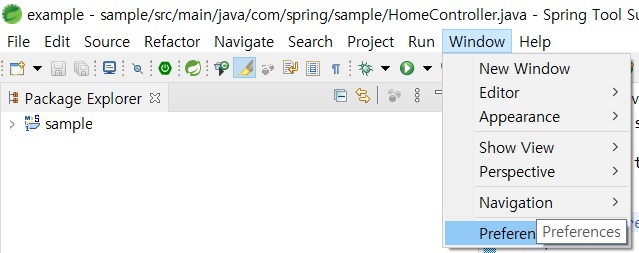① "Window" → "Preferences" 메뉴를 클릭한다.
