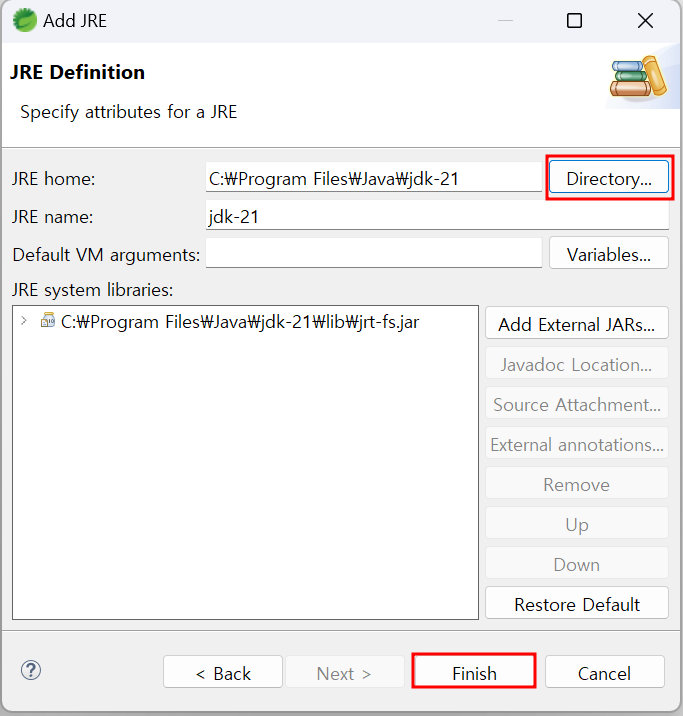 ④ "Directory..." 버튼을 클릭하여 추가하려는 JDK가 설치된 폴더를 지정한다.