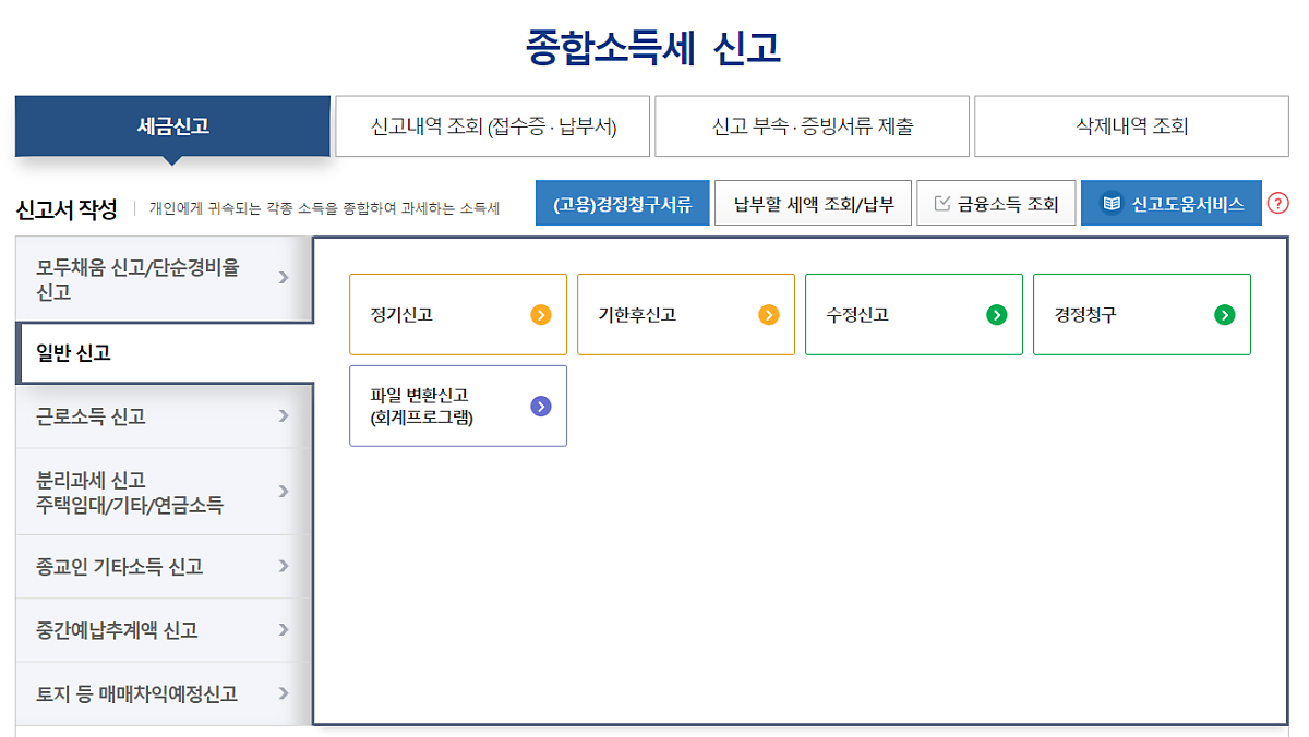 ✅ 홈택스 메뉴 [세금 신고 ▶ 종합소득세 신고 ▶ 일반 신고 ▶ 정기 신고]