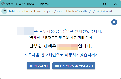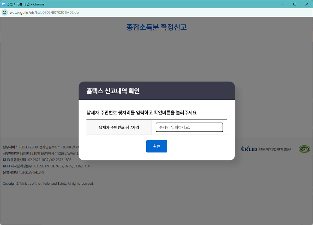 위택스 접속하면 주민번호 뒷자리 입력 팝업이 뜹니다.