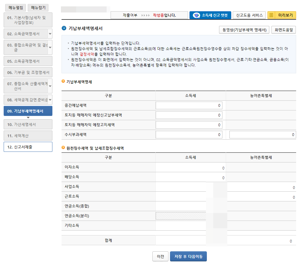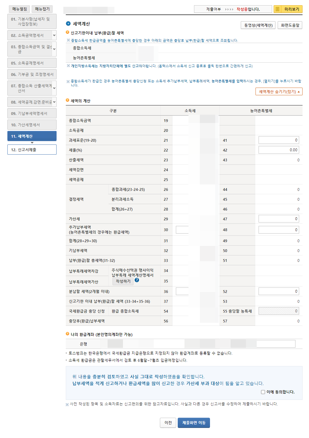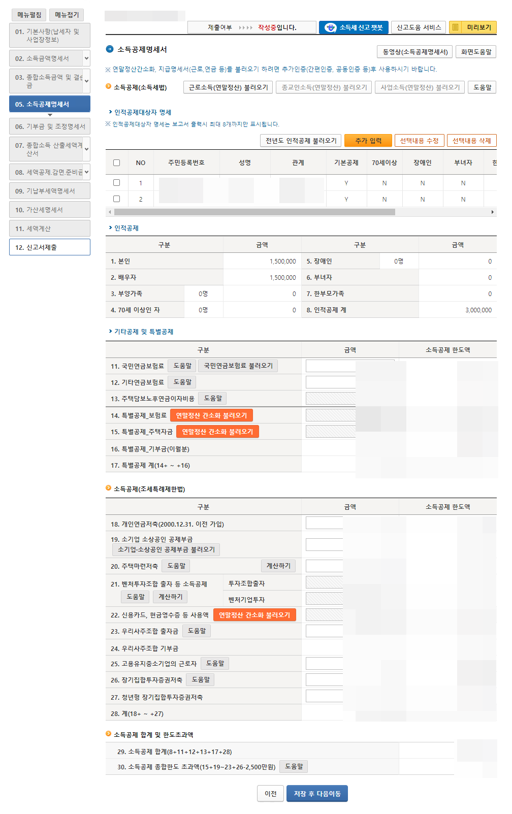 세액 공제 받을 항목들이 잘 적용이 되었는지 반드시 확인해주셔야 합니다.