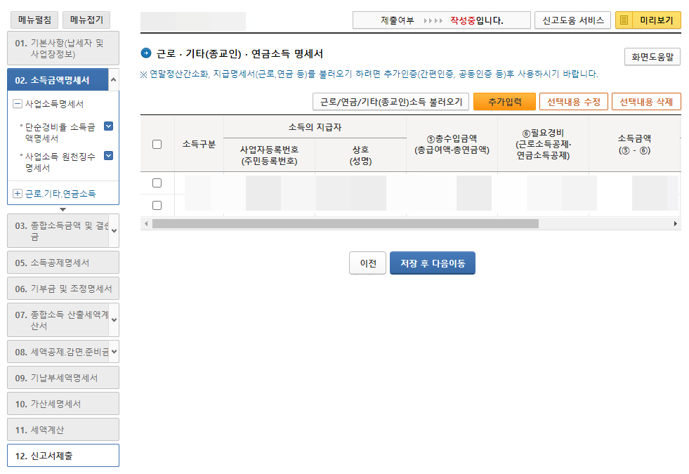 이것을 기반으로 신고서가 제출되니 잘 확인해주시기 바랍니다.