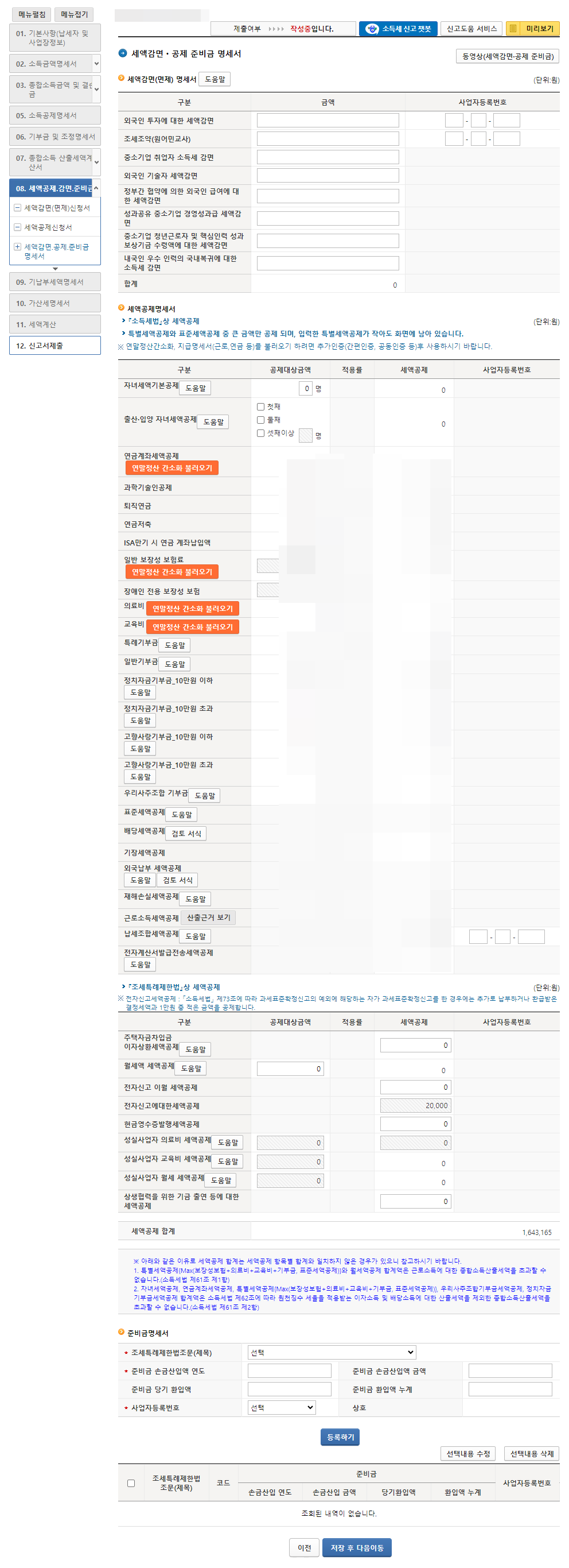 [세액감면(면제)신청서], [세액공제 신청서] 는 해당하시는 분만 입력해주시면 됩니다.