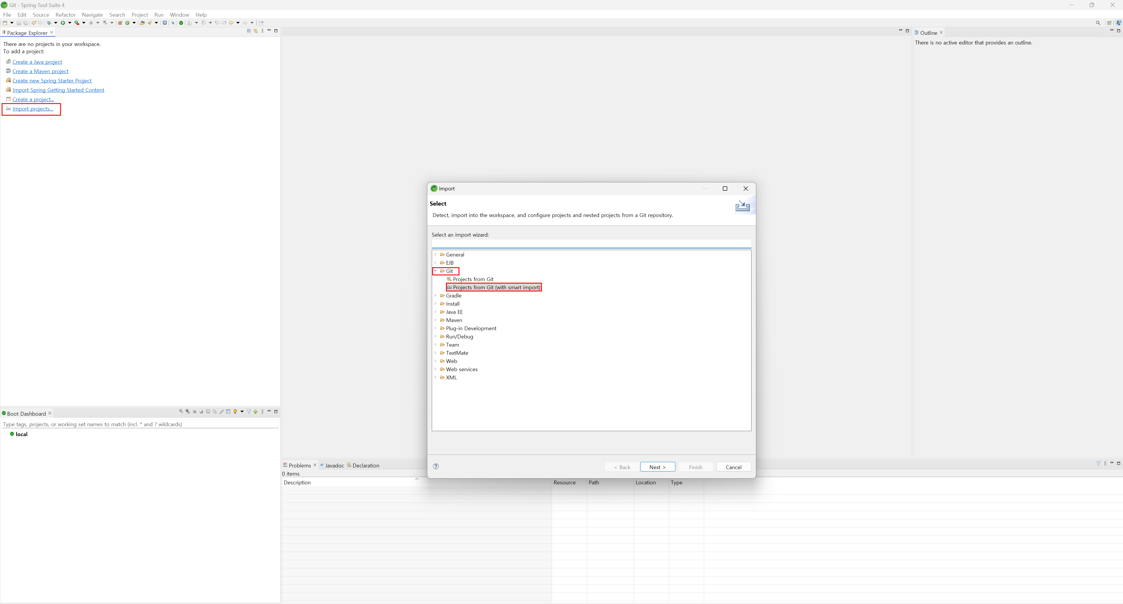 - 왼쪽 메뉴중 import projects 선택