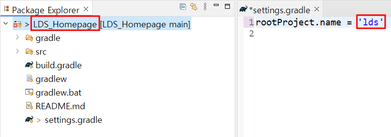 ex) settings.gradle의 rootProject.name의 명 ▶ lds