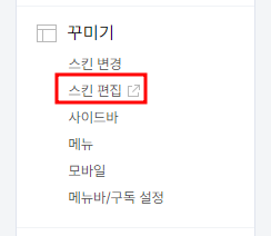 티스토리 관리 → 메뉴 → 꾸미기 탭 → 스킨편집