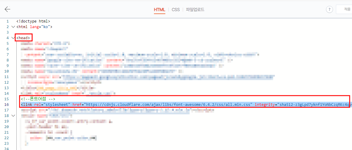 <head> 영역 안에 해당 코드를 붙혀넣는다.