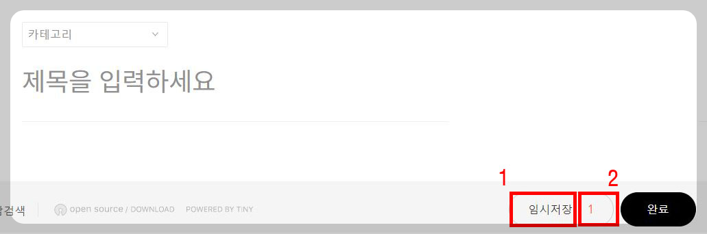 우측 하단 “임시저장“ [1]버튼 클릭하면 임시저장이 됩니다.