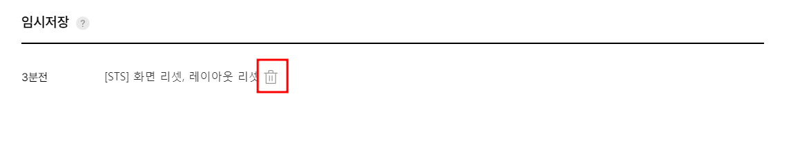 휴지통 아이콘 버튼 클릭하면, 임시저장글 삭제 됩니다.
