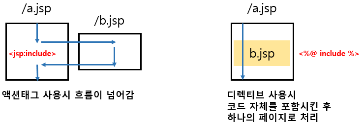 | 비교 | <jsp:include> | inclue 디렉티브 |