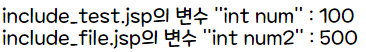 "include_file.jsp"에서는 include_test.jsp에서 선언된 변수 "int num = 100"을 사용할 수 있다.