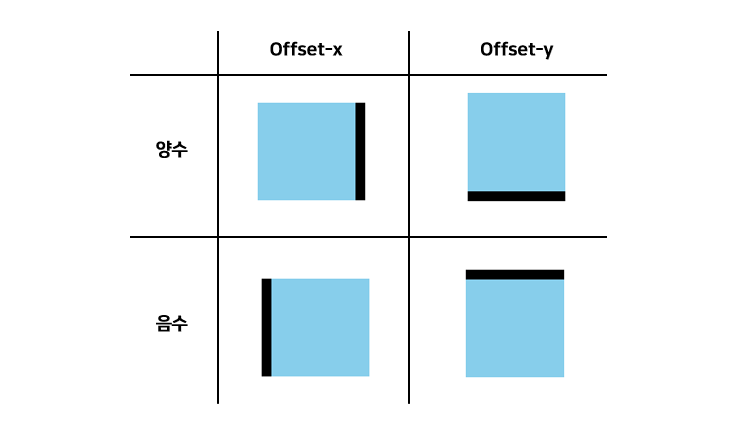 | offset-x | 요소를 기준으로 그림자의 수평 방향 떨어진 간격 |