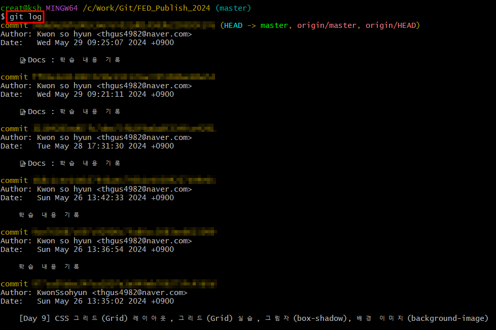 1) 커맨드 라인에 git log 입력