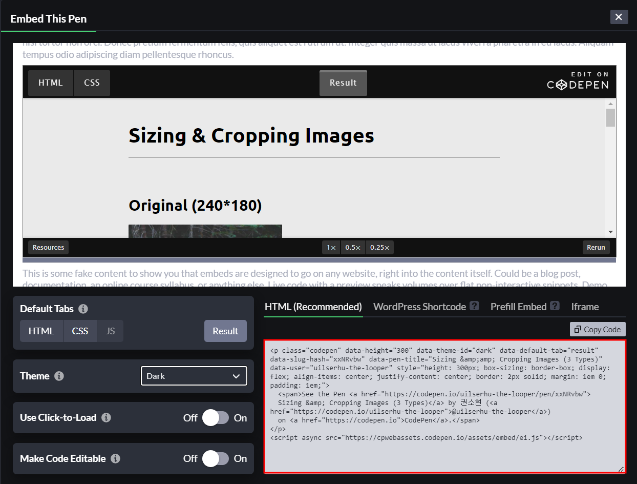 3. 코드펜(CodePen) 결과화면 노출 방식