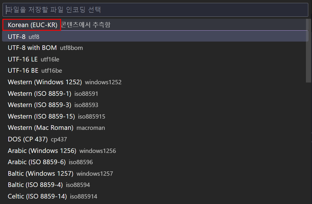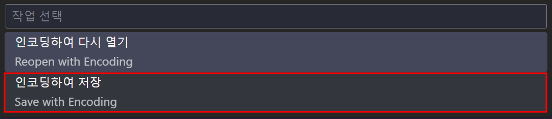 인코딩 타입을 바꿔서 자동 저장까지 하고 싶다면 save with encoding를 선택