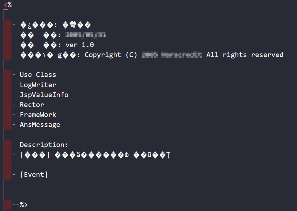 Visual Studio Code로 파일을 열어보니 한글로 작성된 부분이 모두 깨져 있다.