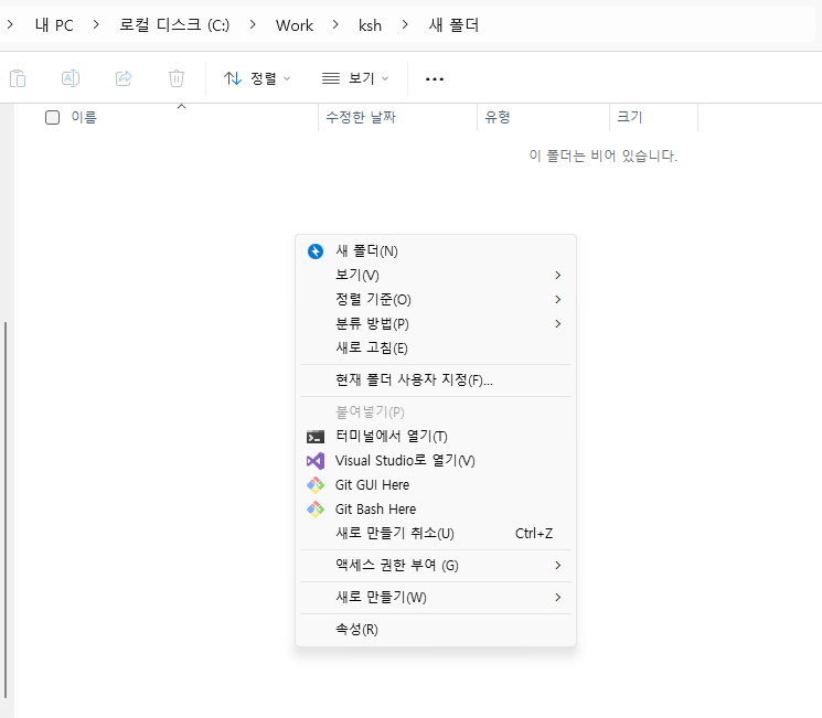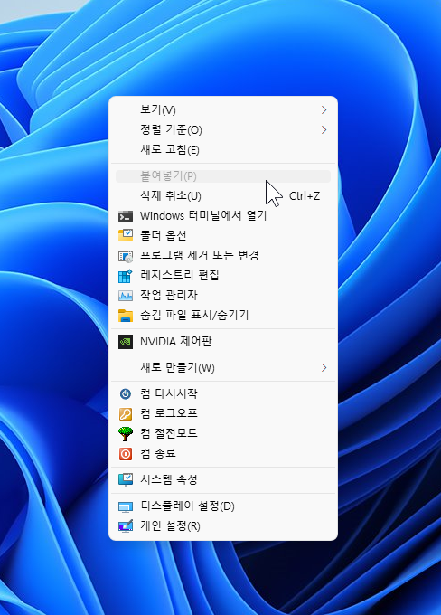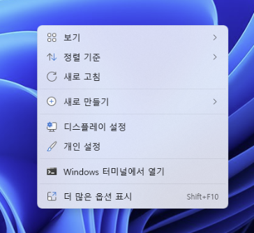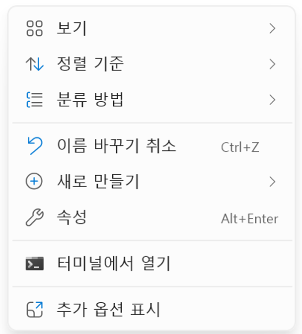 다시 우클릭을 해보시면 '추가 옵션 표시'가 보이지 않게 된 것을 확인하실 수 있습니다.