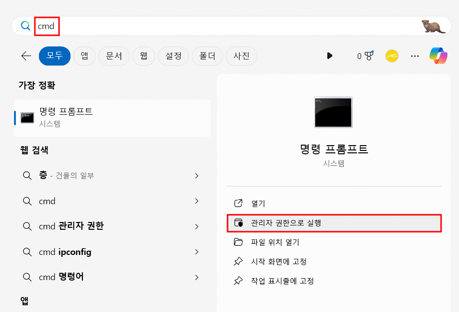 1. CMD ▶ 관리자 권한으로 실행