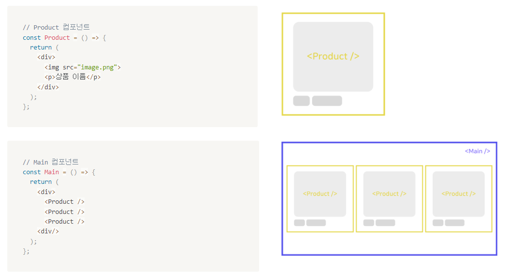 JSX식 내에서 꺽쇄 기호<>를 사용한 태그 형태로 사용할 수 있습니다.
