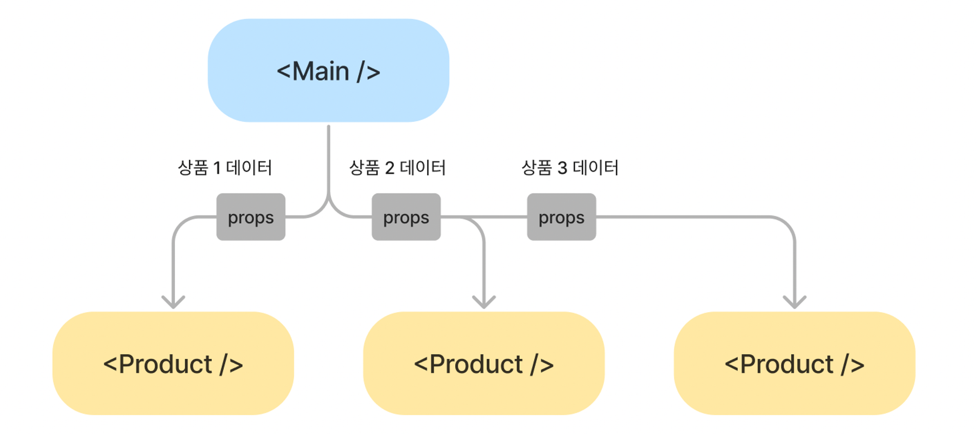 각각의 상품 데이터를 상위 컴포넌트에서 하위 컴포넌트에게 지정해서 내려줄 수 있습니다.