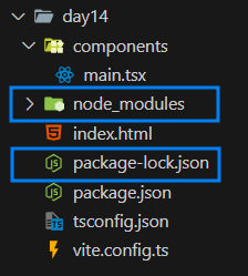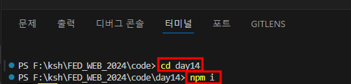 - "npm i" 명령어 입력 ➡️ '📁node_modules' 폴더 / '📜package-lock.json' 파일 생성