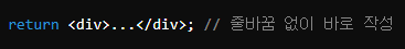 | ★ 줄바꿈 없이 JSX 코드 작성 |