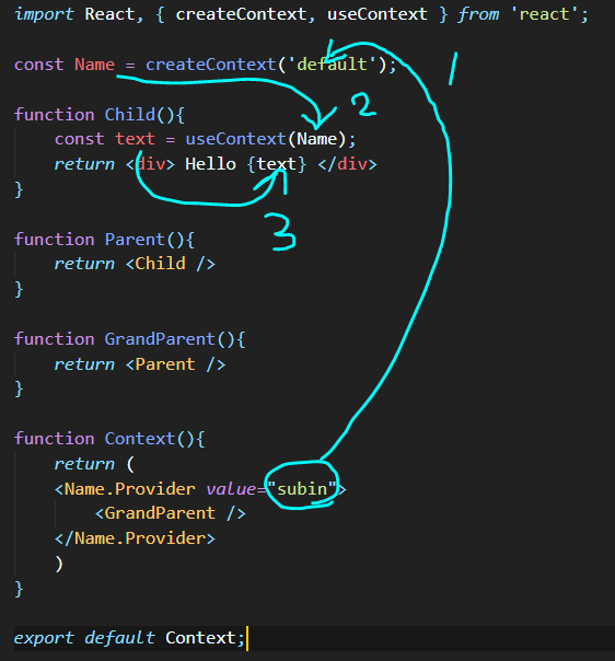 - 자식 컴포넌트 ➡️ useContext(Context); : 해당 컨텍스트의 현재 상태값 가져옴