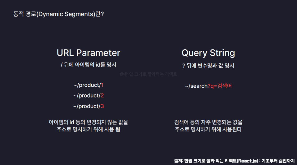 <Route path="/경로명/:동적경로 값" element={<컴포넌트 />} />