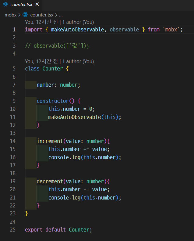 makeAutoObservable(this); // ▶ 상태와 메서드를 자동으로 설정