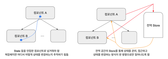 이를 통해 컴포넌트 간에 상태를 계속 전달하지 않아도 되어 상태 관리가 간단해집니다.