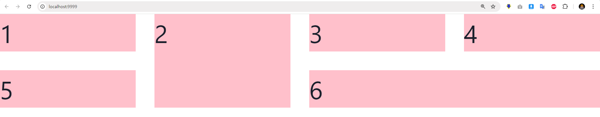 <GridItem bg="pink" colSpan={2}>6</GridItem>