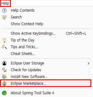 1. 'Help' ▶ 'Eclipse Marketplace' 클릭