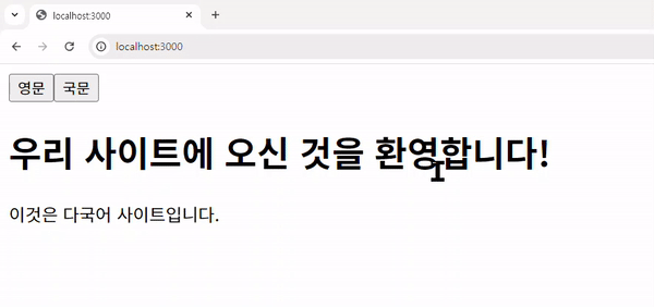 이제 다국어 기능이 정상적으로 작동하며, 버튼 클릭을 통해 언어를 변경할 수 있습니다.