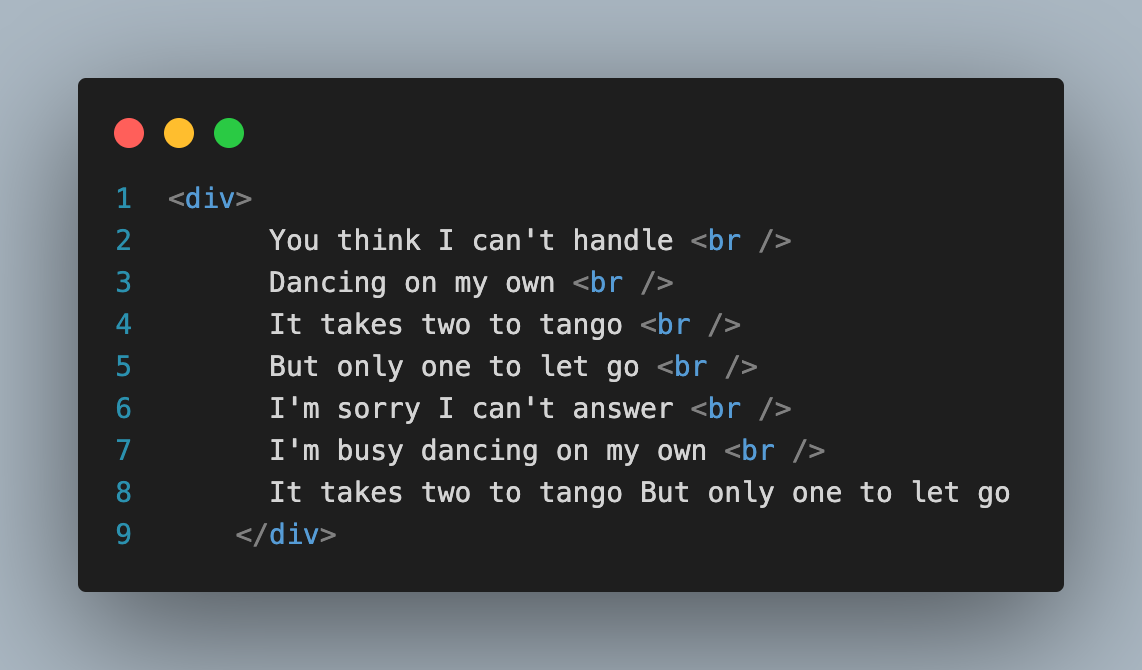 웹 페이지에서 텍스트를 나열할 때 줄바꿈을 원하면 <br> 태그를 사용합니다.