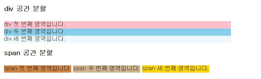 <span>과 <div> 태그는 웹 페이지에서 특정 부분을 그룹화하거나 스타일을 적용하는데 사용