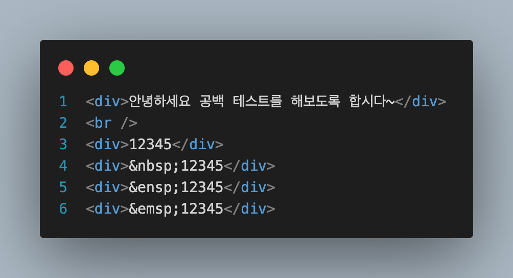 HTML에서 여러 개의 공백을 사용하더라도 브라우저는 하나의 공백만 인식합니다.