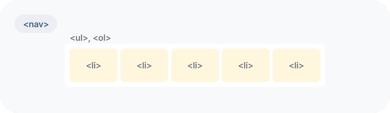 <nav>는 GNB 등 내비게이션 메뉴를 묶는 데 사용되며, 보통 <ul>과 함께 나타납니다.