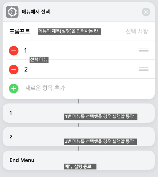 아래의 각 선택 메뉴를 선택함에 따라 원하는 앱이 실행되도록 구성했습니다.