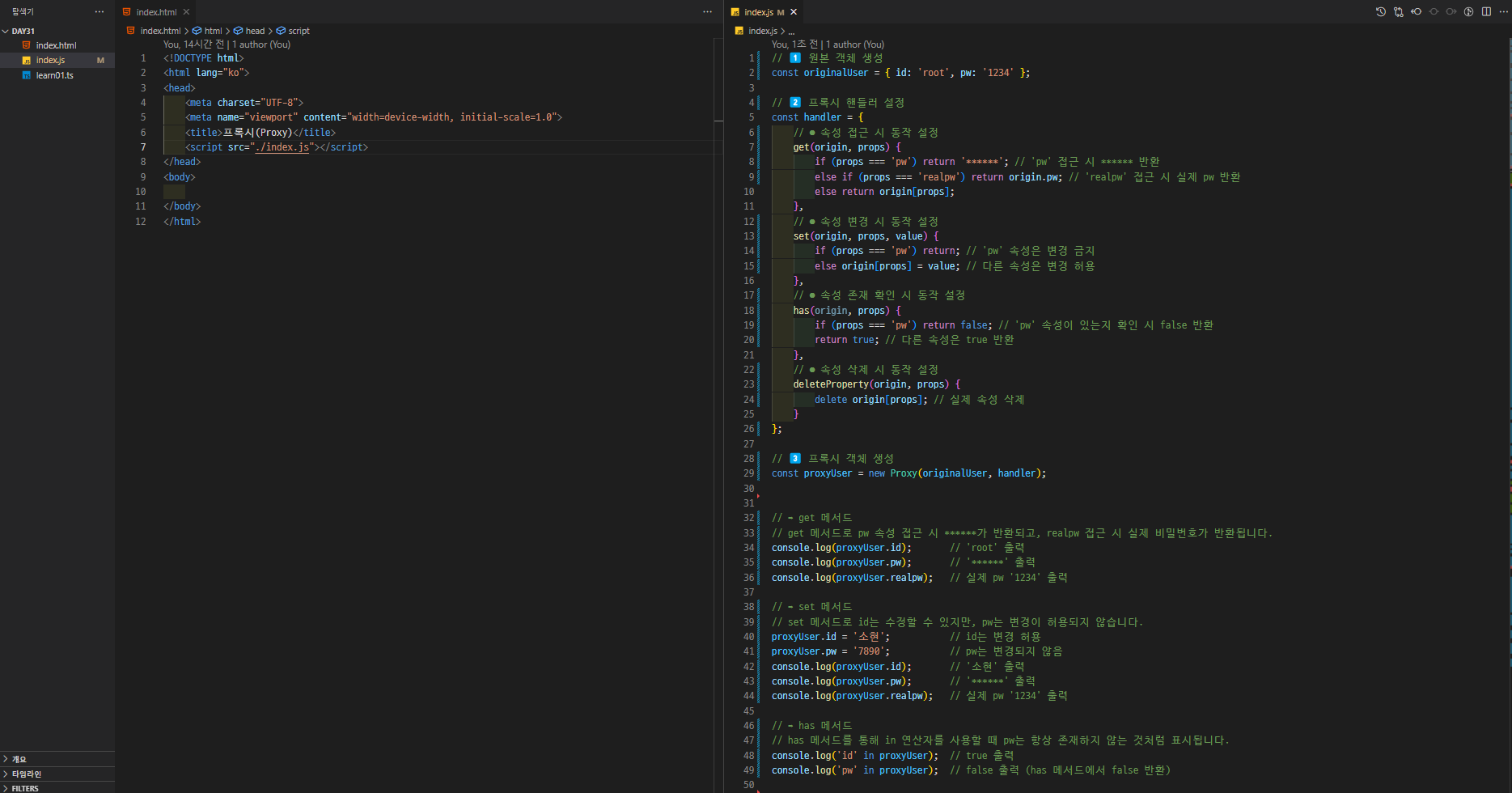 - 객체형 프록시 : 객체 보호/제어 (get, set, has, deleteProperty)
