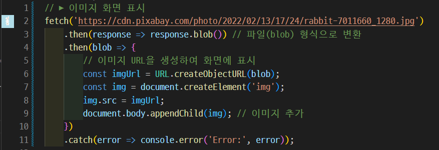 .then(response => response.blob()) // 파일 객체(Blob) 형식으로 변환