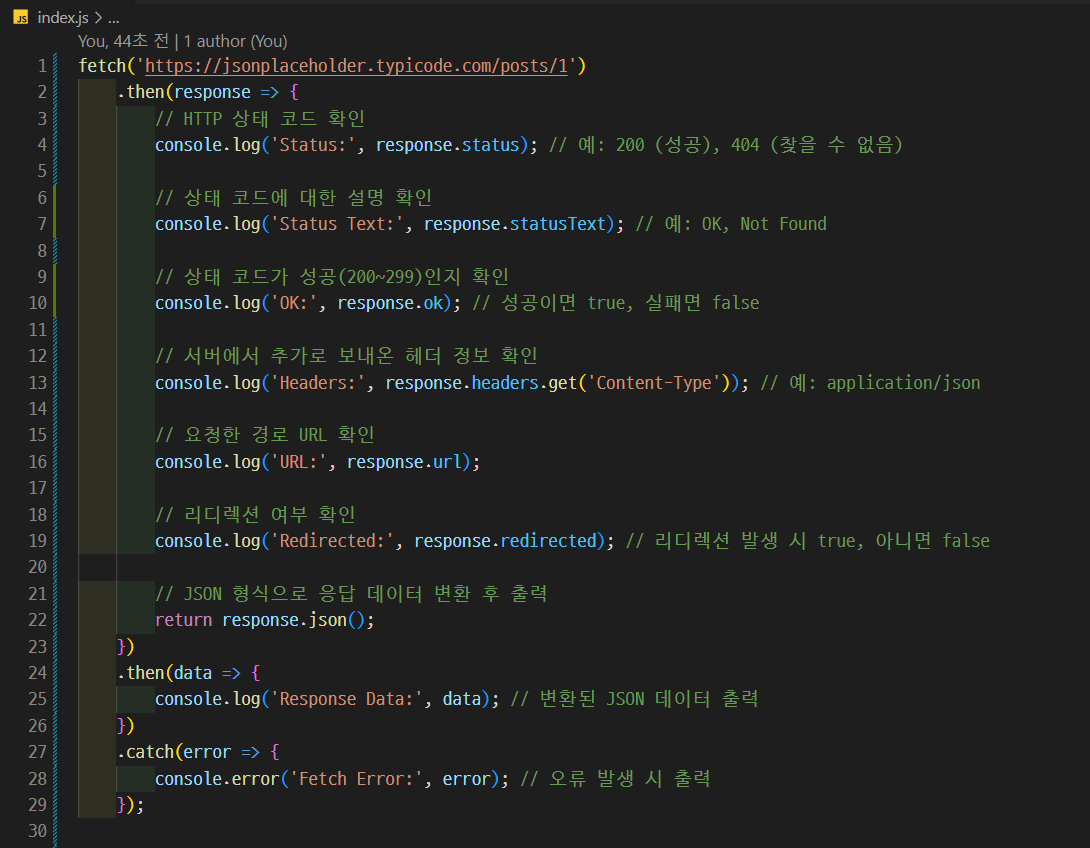console.log('Status:', response.status); // 예: 200 (성공), 404 (찾을 수 없음)