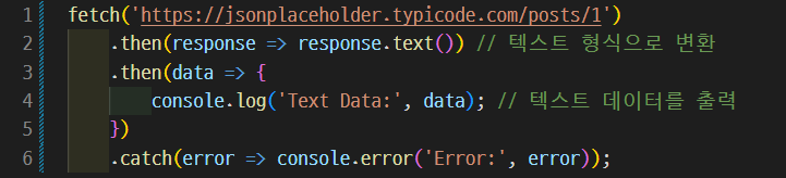 .then(response => response.text()) // 텍스트 형식으로 변환