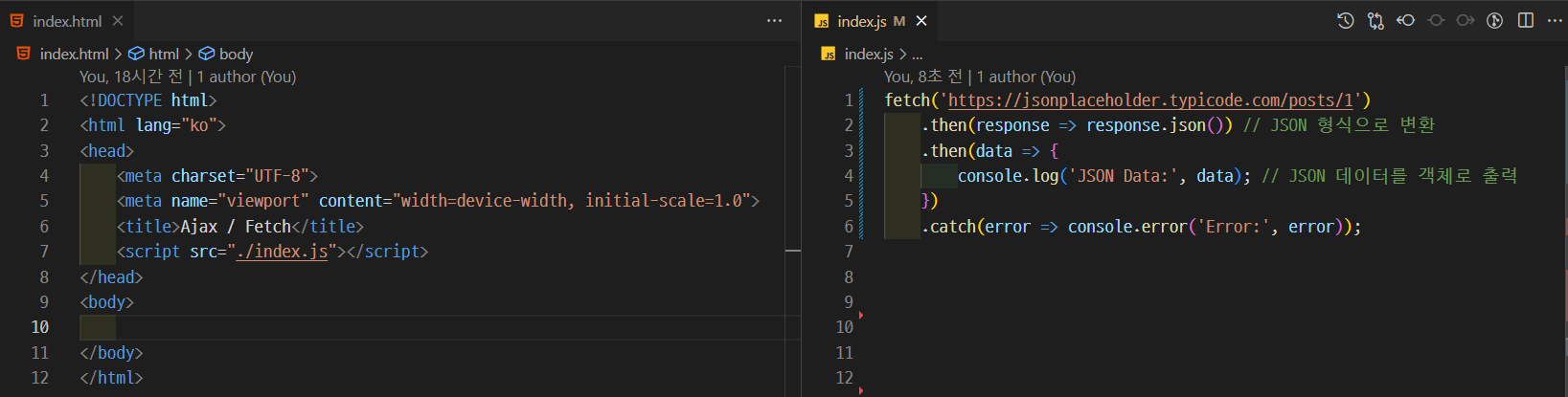 - JSON 데이터를 받으려면 response.json() 호출 필요