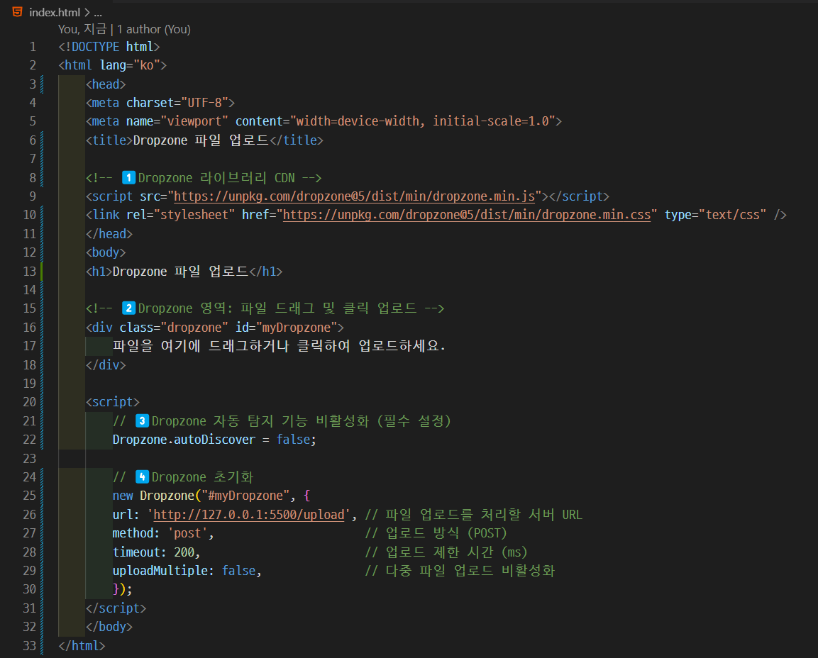 <!-- 1️⃣Dropzone 라이브러리 CDN -->