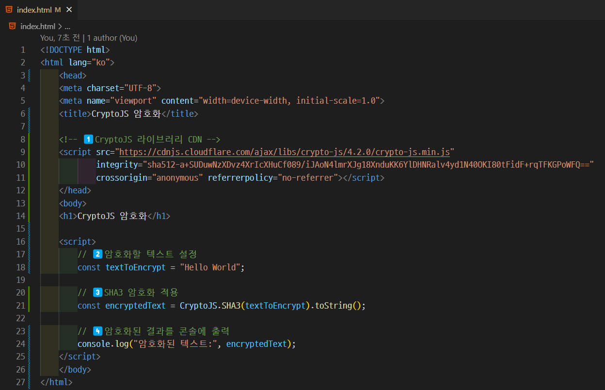 <!-- 1️⃣CryptoJS 라이브러리 CDN -->