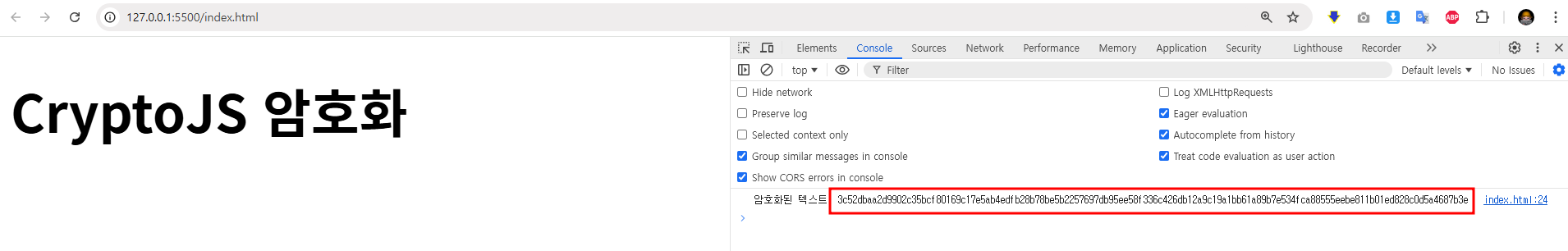 // 4️⃣암호화된 결과를 콘솔에 출력
