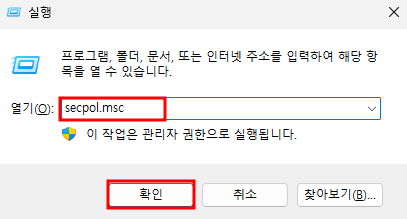 1. 실행창 (Win키 + R) ▶ secpol.msc 입력