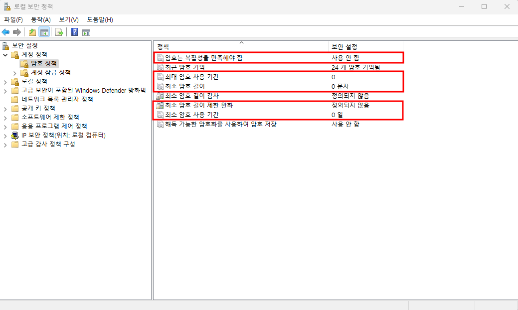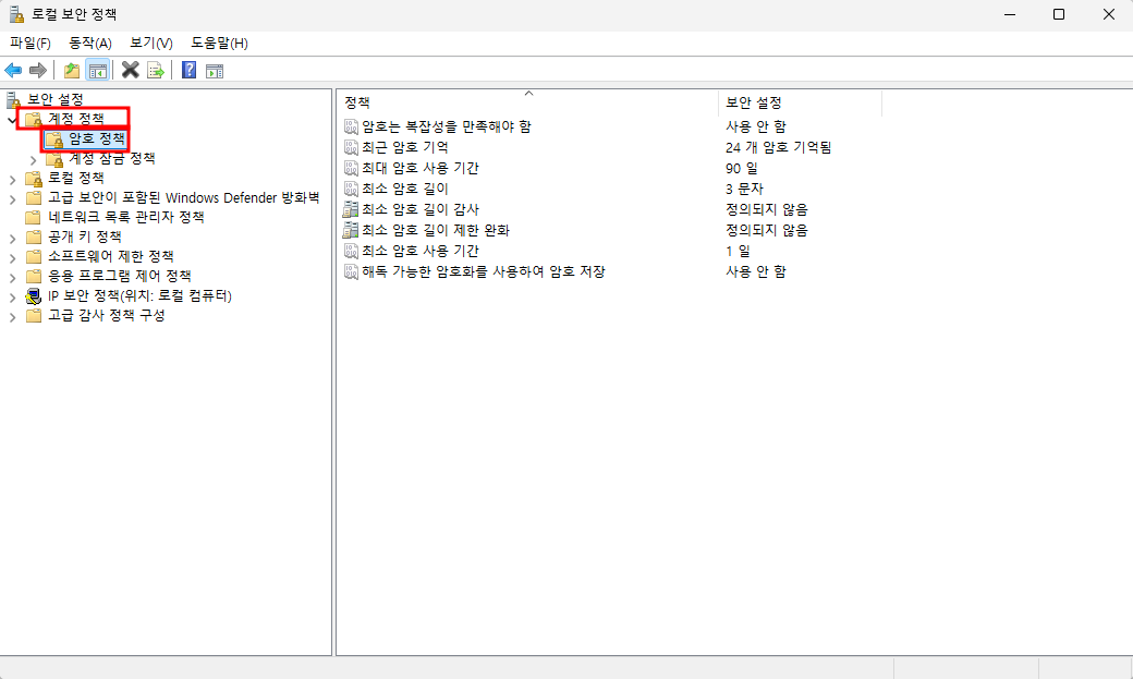 2. 보안 설정 ▶ 계정 정책 ▶ 암호정책