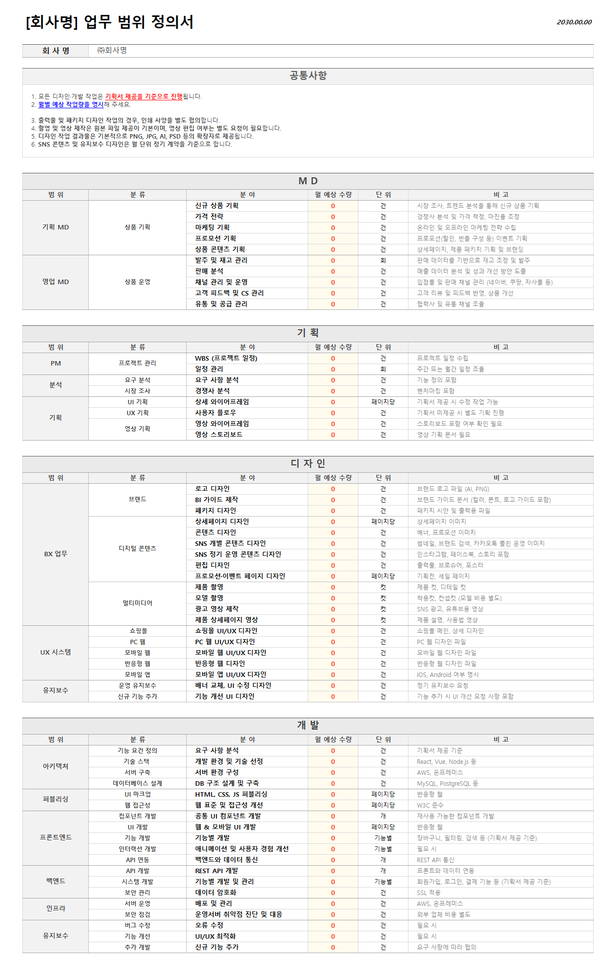 📝 [회사명] 업무 범위 정의서(MD,기획,디자인,개발)