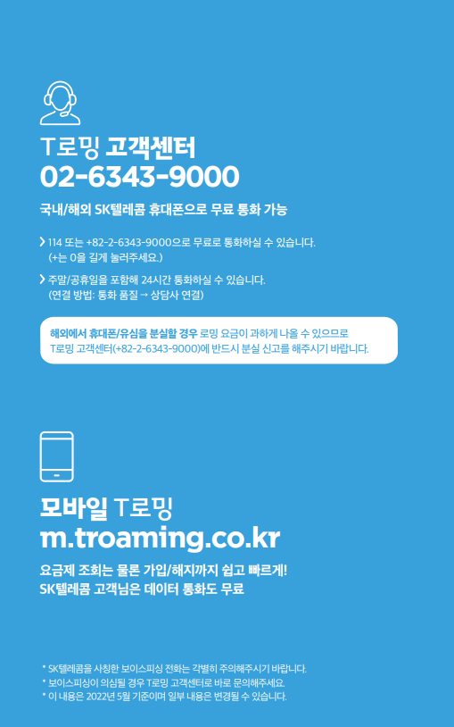 🔎 T로밍 고객센터